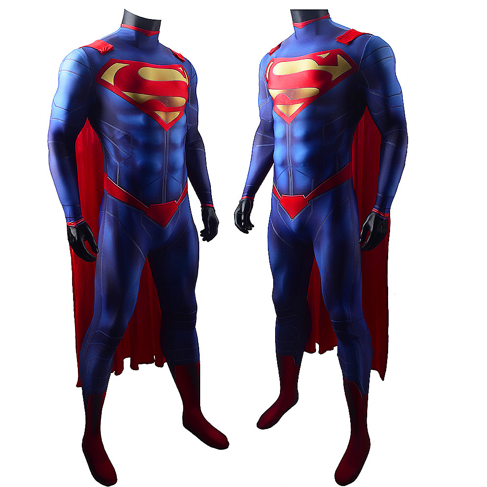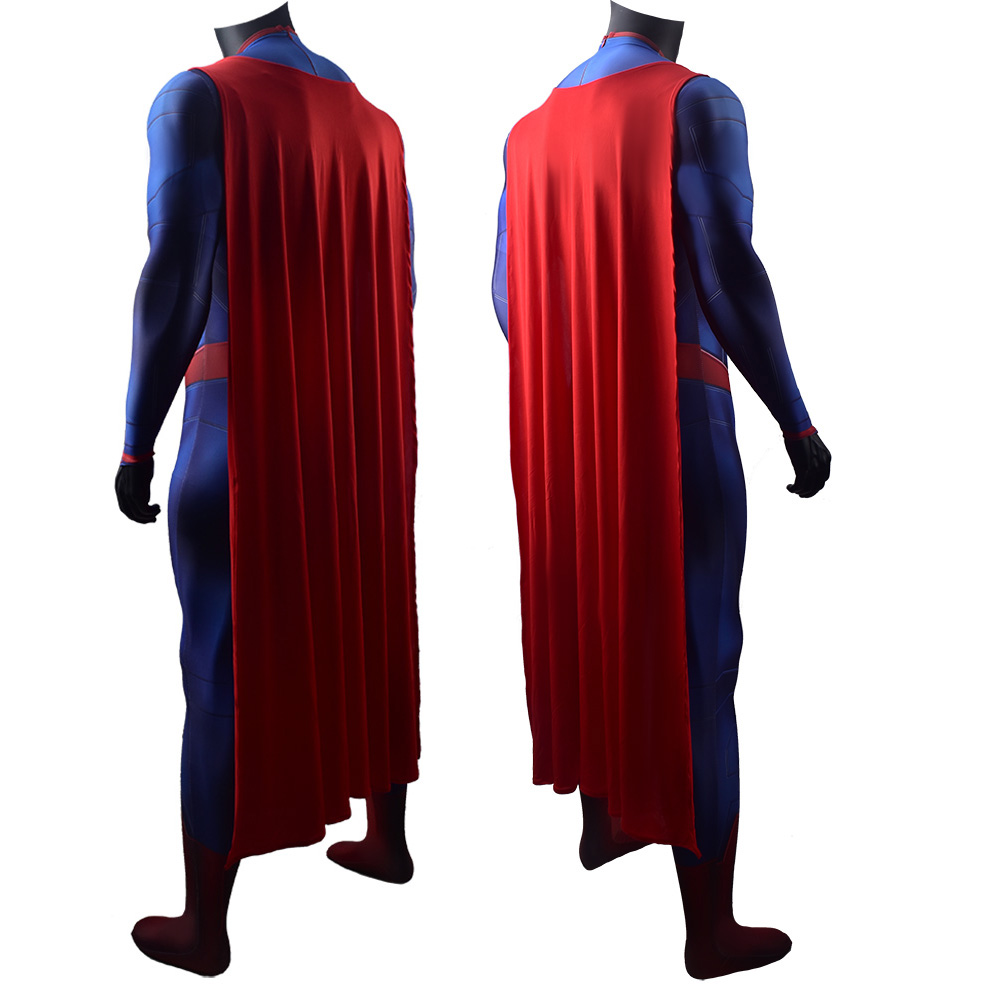 nombre del producto: Halloween Superman Deluxe Superhero Cosplay Bodysuit Bodysuit Zentai Onesie Cape Outfit para niños Adultos